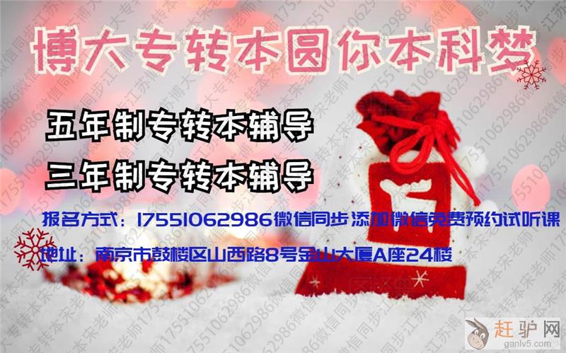 江苏博大五年制专转本学校本着保三本冲二本的服务理念,专业从事五年制专转本辅导13年,主要辅导五年制专转本英语和各主考院校专业课,包括财务管理、物流管理、旅游管理、计算机、自动化、动画、护理、药学等专业,并与南京晓庄学院、金陵科技学院、三江学院等主考院校合作,编著权威内部教学资料,提前获取专业课精准考纲,编写专业课复习试卷集、测试题等,并且每年联合各大院校开展多次模拟考试,测试学员各阶段的学习情况,做出针对性的教学计划调整,帮助学员高效复习,博大专转本具体招生详情联系 ①七五五,一〇六二,⑨八六 微信同步,添加微信免费预约试听,地址南京市鼓楼区山西路8号金山大厦A座24楼。