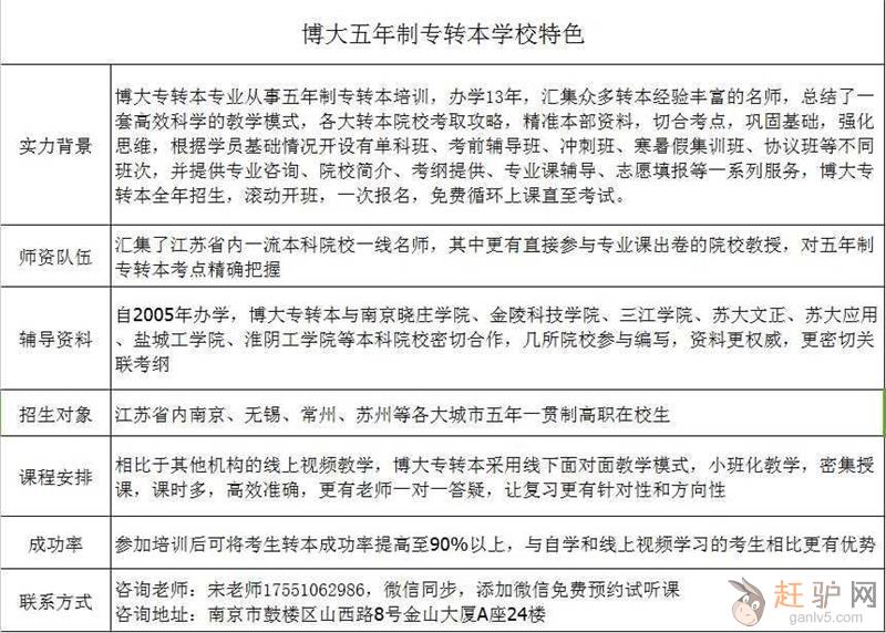 江苏瀚宣博大专转本英语辅导都是由有着多年教学经验的名师针对性授课,针对基础不同的学员做针对性教学,专业课辅导由主考院校老师授课,并开展模拟考试,了解学员每个阶段的学习情况,江苏博大在省内南京、无锡、常州、苏州、南通等城市均有分校,可就近安排上课g~a~n~l~v~5~c~o~m。