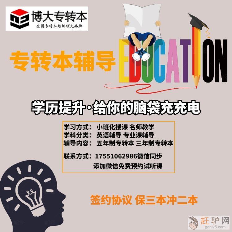 江苏博大五年制专转本学校办学13年,主要从事五年制专转本辅导,三年制专转本辅导,三年制专转本辅导英语、语文、数学、计算机,五年制专转本辅导英语和各主考院校专业课,包括财务管理、物流管理、旅游管理、秘书学、会计、计算机、动画、护理、药学等专业,并与南京晓庄学院、金陵科技学院、三江学院等主考院校合作编著权威内部教学资料,提前获取专业课精准考纲,编写各专业复习试卷集,习题册等,帮助同学们高效复习,具体详情联系招生老师 ①七五五,一〇六二,九八⑥ 微信同步,添加微信免费预约试听,地址南京市鼓楼区山西路8号金山大厦A座24楼赶驴网。