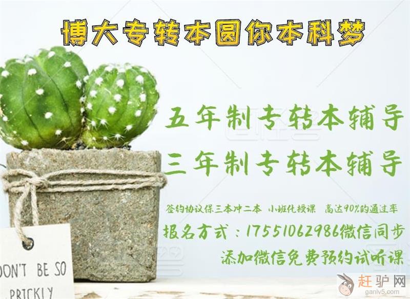 江苏博大五年制专转本学校办学13年,主要从事五年制专转本辅导,三年制专转本辅导,三年制专转本辅导英语、语文、数学、计算机,五年制专转本辅导英语和各主考院校专业课,包括财务管理、物流管理、旅游管理、计算机、汉语言文学、动画、护理、药学等专业,江苏博大专转本学校与南京晓庄学院、金陵科技学院、三江学院等主考院校合作,编著权威内部教学资料,专业课复习试卷集,习题册,并提前获取专业课精准考纲,让同学们复习更高效更有方向,具体招生详情联系招生老师 一七⑤五,一〇六二,⑨八六 微信同步,添加微信免费预约试听课,地址南京市鼓楼区山西路8号金山大厦A座24楼。