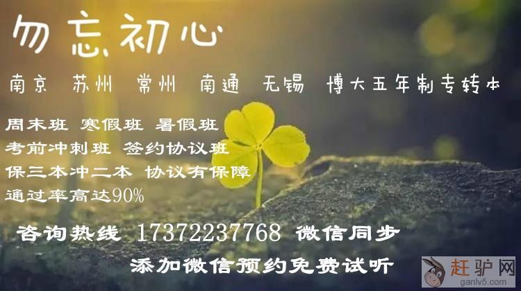 五年一贯制专转本要想成功也并不是一件容易的事,光靠自学显然是不够的,借助江苏博大专转本,让你的五年制专转本变得更简单一些,通过率更高一点!江苏博大专转本培训学校办学13年,专业从事五年制专转本辅导、三年制专转本辅导,在江苏省内南京、南通、苏州、常州、无锡等多个城市均设有分校,小班化教学,全日制上课模式,高考式复习,汇集了众多拥有多年转本辅导经验的院校名师,精准的内部备考资料以及最新的转本资讯,南京晓庄、金陵科技、三江学院等主考院校专业课考纲,提前获取专业课重点和难点,配合博大专转本编著的内部教学材料和专业课复习试卷集、习题册,让考生在转本的路上占据极大的优势,专业课辅导包含会计学、市场营销、计算机、旅游管理、素描、色彩、机械制图、小学教育、大学语文、护理、要大学等各大主考院校全部专业,更多专业课咨询联系刘老师一七三.七二二三.七七六八.微信同步,南京校区地址鼓楼区山西路8号金山大厦A座24楼。