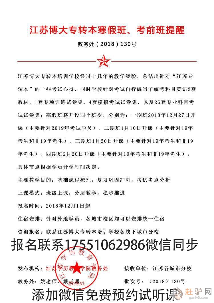 因为五年制专转本考试是一场选拔性考试,对考生的学习能力、专业知识的掌握情况要求都很高,而五年制高职生基础薄弱,专科阶段的知识更是难以应对考试,为了帮助同学们通过专转本考试,圆本科梦,江苏博大专转本学校将在寒假来临之际,开设考前集训班和寒假集训班来自www.ganlv5.com。