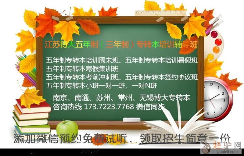 南京博大专转本专业从事五年一贯制专转本培训辅导13年,年培训人次近千,通过率高达90%,名师小班化教学,全日制上课模式,高考式复习管理,与南京晓庄、金陵科技、三江学院等多家主考院校合作多年,提前获取专业课精准考纲,再有博大专转本授课老师分析重难点、易错点,并进针对性辅导、一对一答疑和查漏补缺,让考生在转本路上占据极大的优势www.ganlv5.com赶驴网。