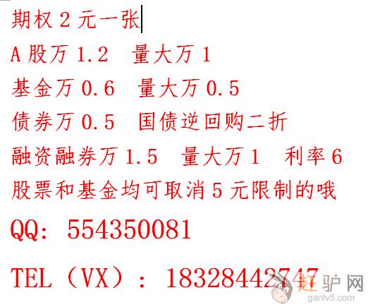 3.融资融券佣金万1.5,量大万1,融资利率6(目前很多券商没有券-源,不能做融-券,我们公司可以做融-券的哦!)