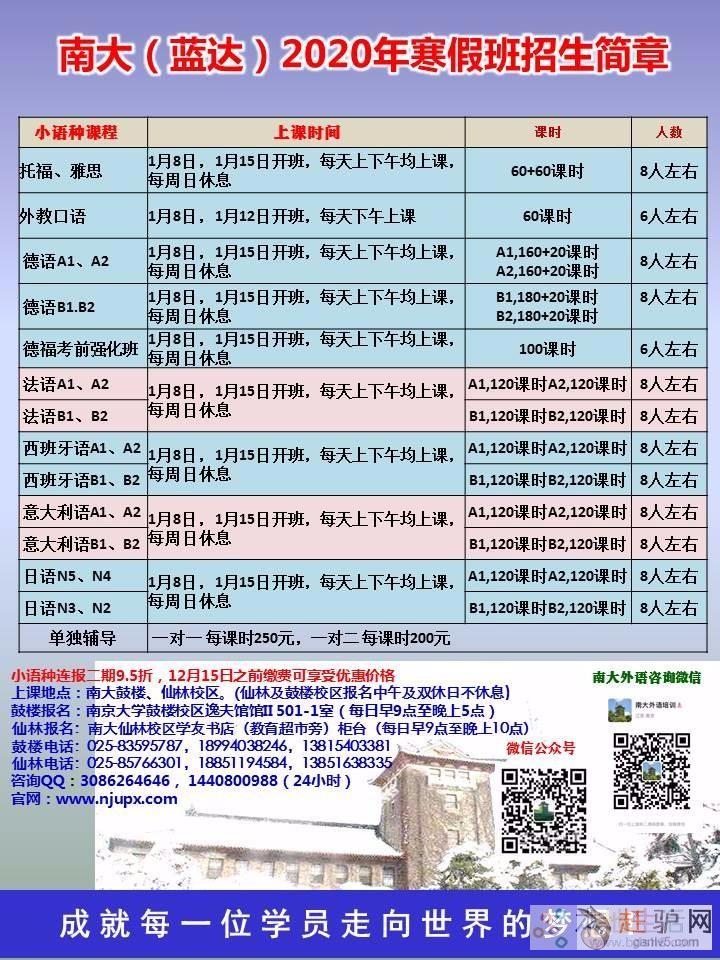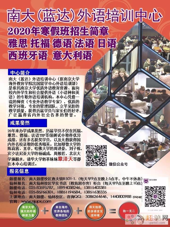 南大(蓝达)外语培训中心(原南京大学海外教育学院出国留学中心外语培训部)是依托南京大学优质外语教育资源、面向校内外学生和社会提供外语(小语种和英语)的专职外语培训机构g~a~n~l~v~5~c~o~m。本中心凭借一流的师资(专业外语教学专家),优质的教学环境,专业的管理团队,立竿见影的教学质量,获得历届学员与家长们的好评,广泛赢得省内外社会各界的赞誉赶 驴 网。