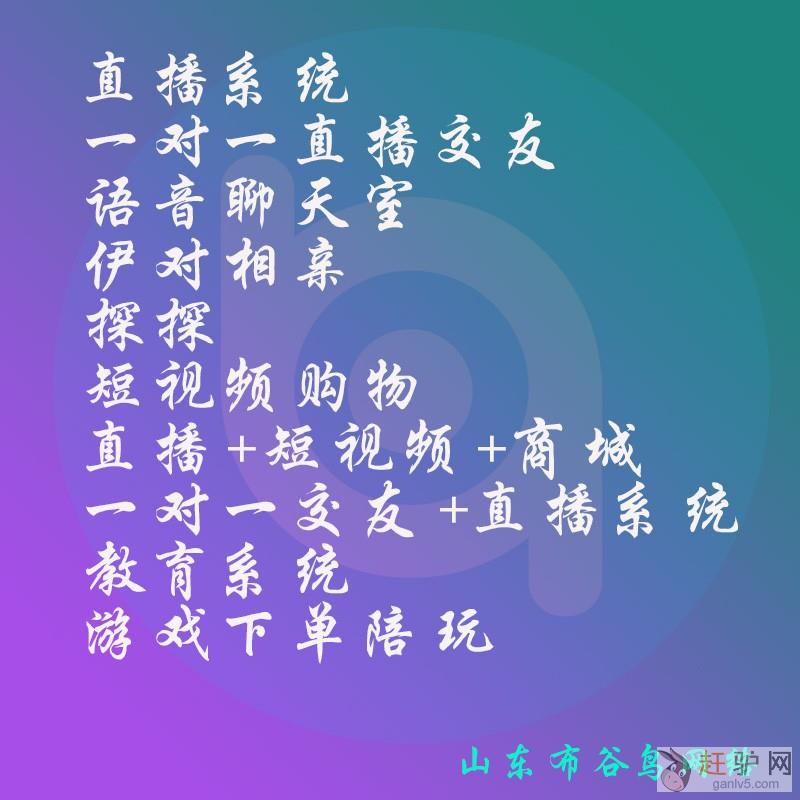 布谷直播:私密房间、按时收费房间、按人头收费、直播间小游戏、连麦,匹K、美颜,守护、奖池幸运、排行榜、附近、小视频、动态,邀请好友,彡级分销、座驾,商城、VIP会员、靓号、家族、分享收益赶~驴~网。