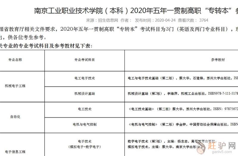 2020年南京工业职业技术学院已加入五年制专转本招生计划