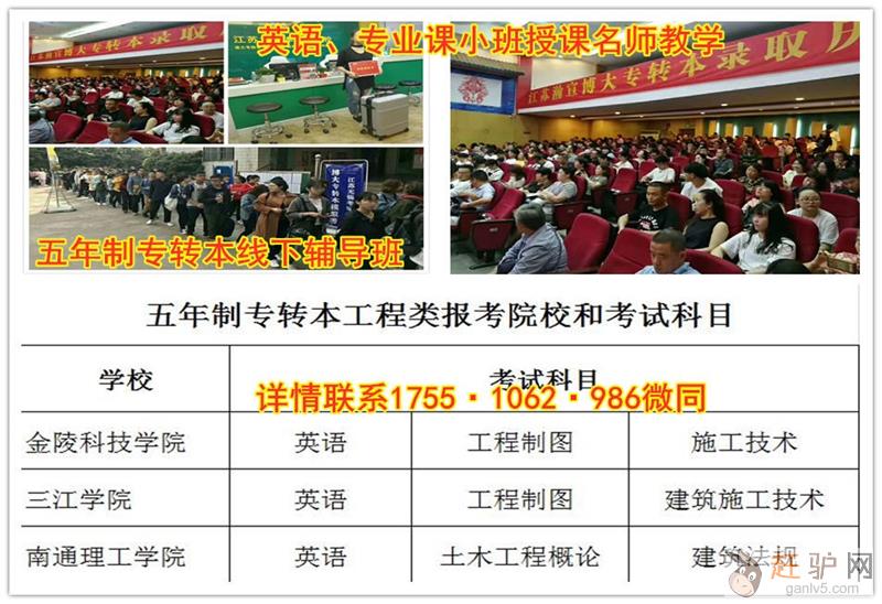 江苏瀚宣博大专转本学校专业从事五年制专转本辅导14年,辅导英语和所有主考院校专业课,为学员提供五年制专转本专业咨询、详细院校介绍、各个模块英语辅导、专业课教学、统一报名、集体送考、志愿填报等一系列流程化服务,每月都有月考周考,一方面也可以了解自己的大致排名,为填报志愿作参考,一方面进行针对性的辅导和查漏补缺,发挥优势,弥补短板,让考生对五年制专转本的了解更加深入,备考更轻松,更有方向性,全年滚动开班,随到随学,一次报名,循环上课直至考试,包含书本教材、英语试卷集、习题册,专业课真.题卷模.拟卷,中间不收取任何费用,南京、无锡、苏州、南通、徐州等各大城市高职生联系瀚宣博大宋老师 1755(微)1062(信)986了解详情,联系老师预约转本试听课赶~驴~网。