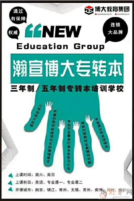 江苏瀚宣博大专转本是全省zui有影响力的专转本线下辅导机构,具备省级合法办学资质,直属江苏省教育厅,专做五年制专转本的教育培训,至今已有十几年的办学教育经验,在五年制专转本辅导方面有着很大的you势。不仅提供学员更丰富的学习资源,高效的复习方法,英语辅导、专业课教学,还有专业的咨询、院校介绍、考纲提供、统1报名、志愿填报、集体送考等1系列流程化服务赶 驴 网。咨询报名请联系总校吴老师1800(微)514(同)3645。